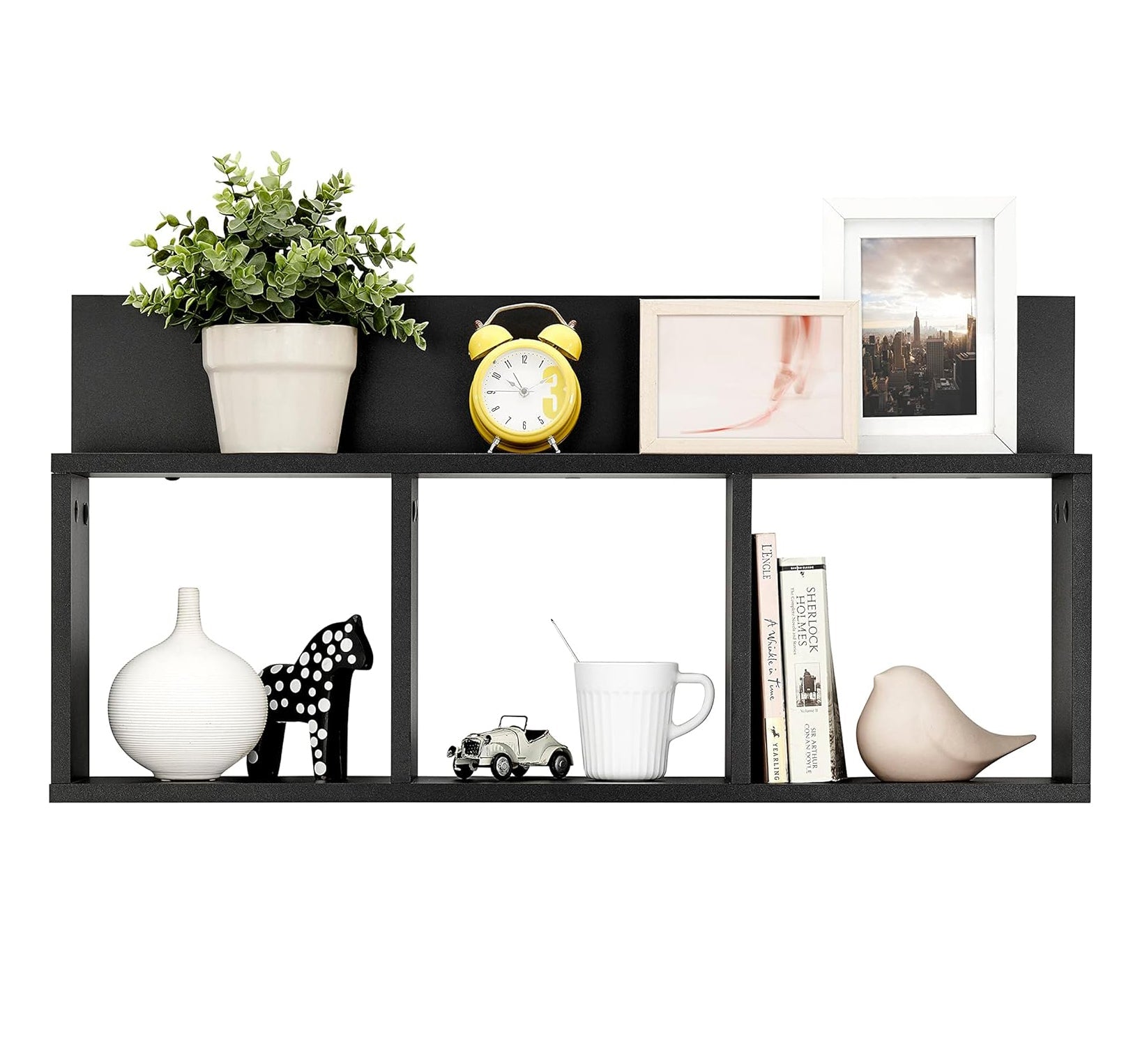 - 📦 Structure polyvalente : trois cubes ouverts pour le rangement + une tablette supérieure pour exposition.